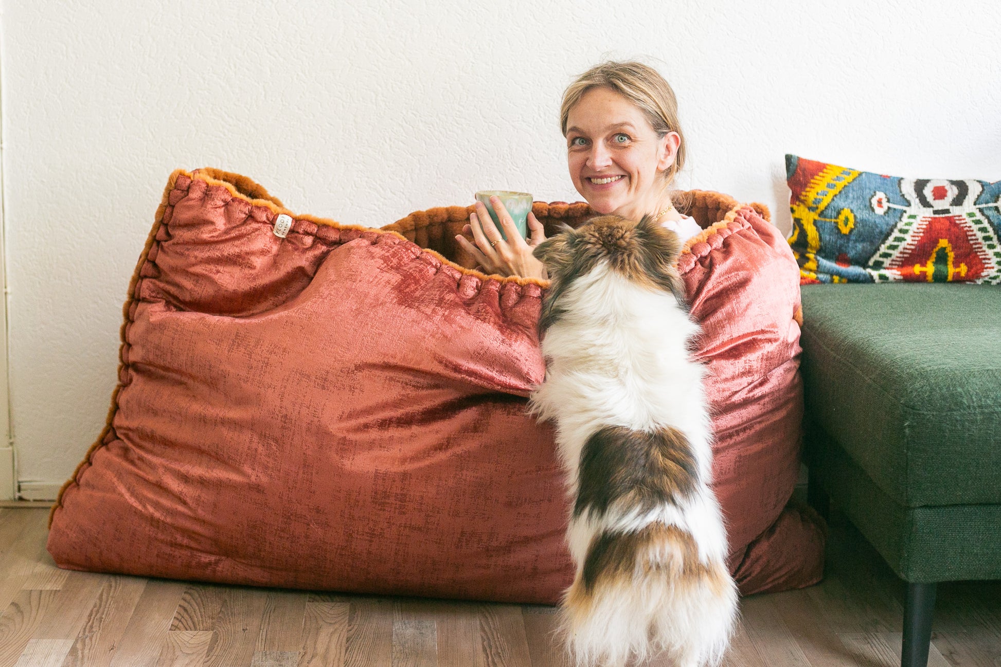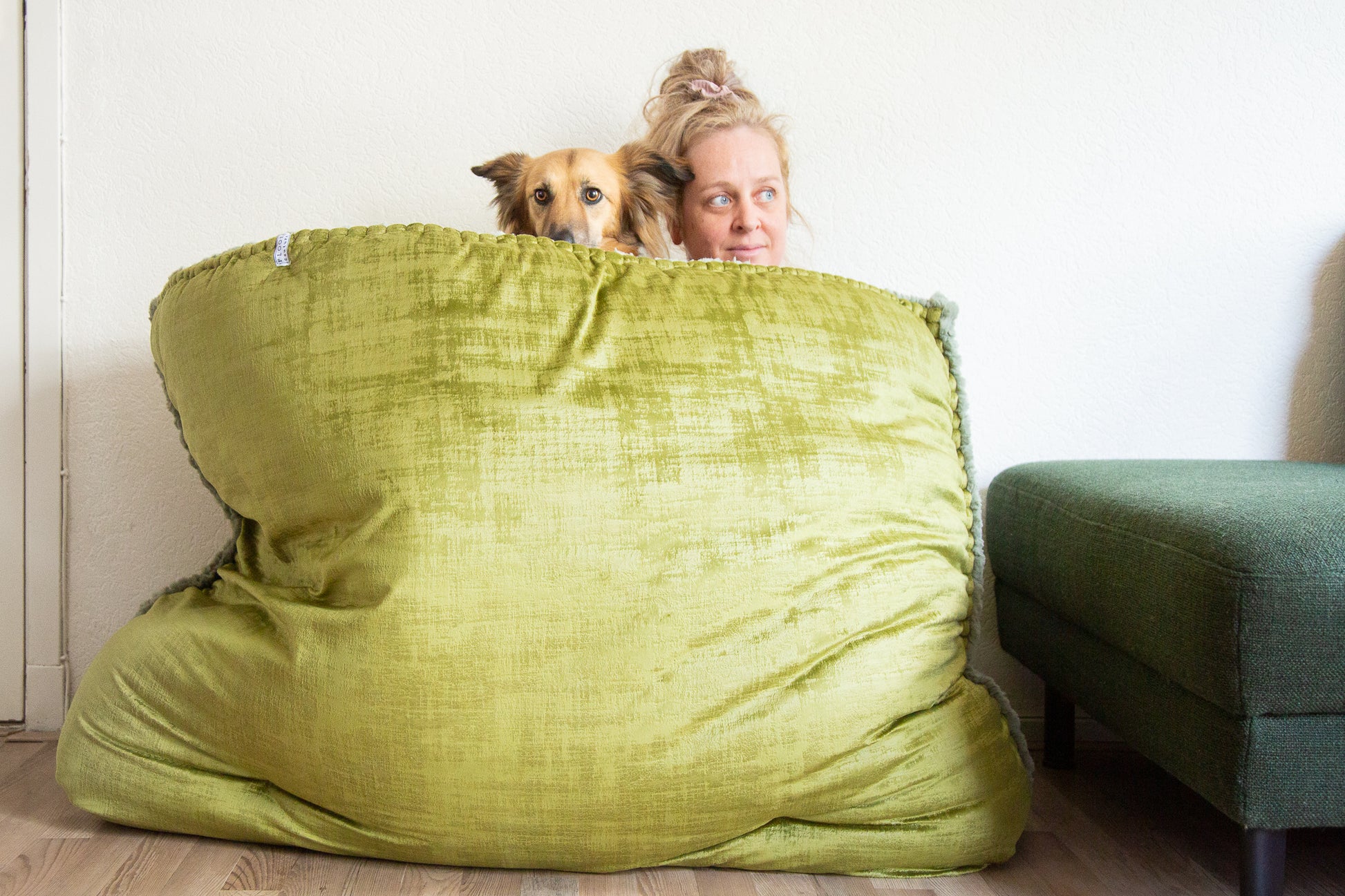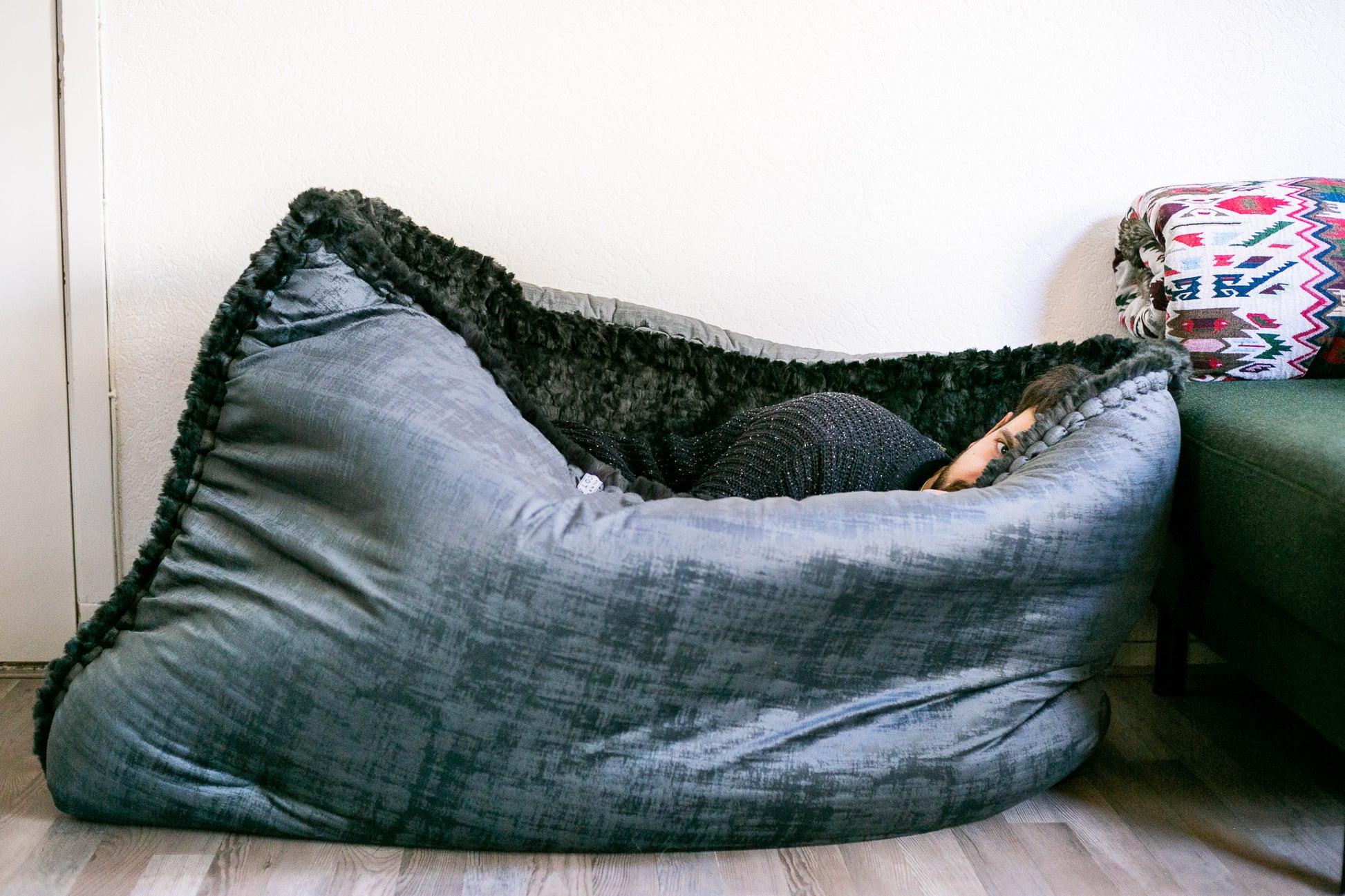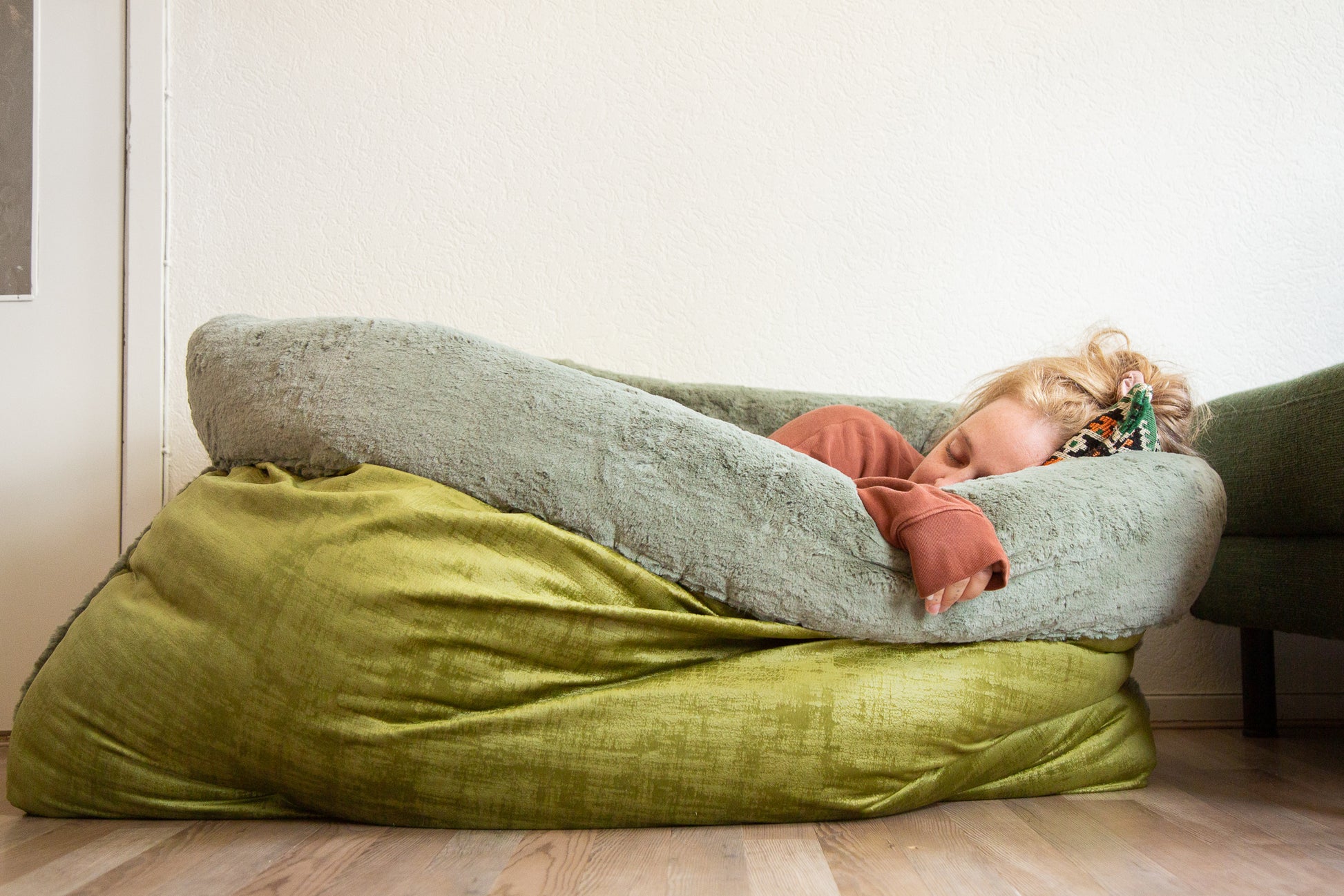 The Floof for People is a handcrafted cocoon-style lounger designed to offer deep relaxation, sensory calm, and cozy moments of rest. Whether it's after a long school day, social activities, or simply to unwind at home, this soft and supportive retreat is ideal for both children and adults.